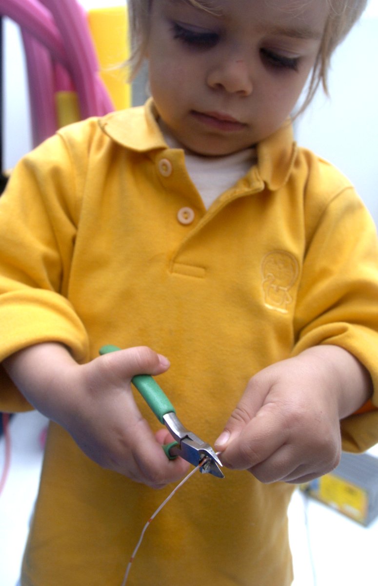 Demonstrating proper soldering technique: Hold the iron on one side of the work and the solder on the other,