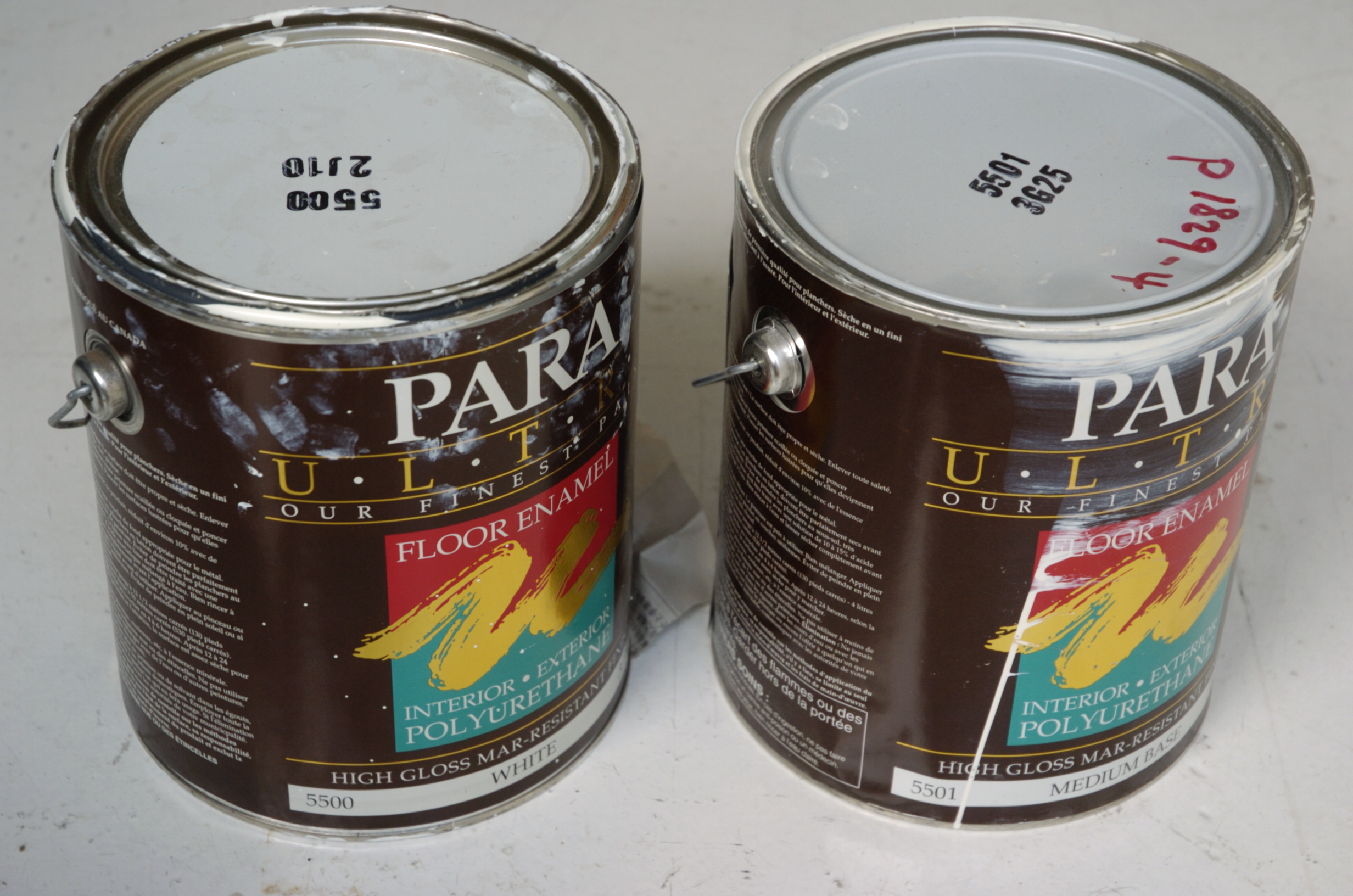 two cans of floor paint (same numbers: 5500, and 5500):