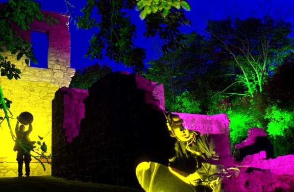 The ruins remain out in the forest, where it is said his ghost haunts