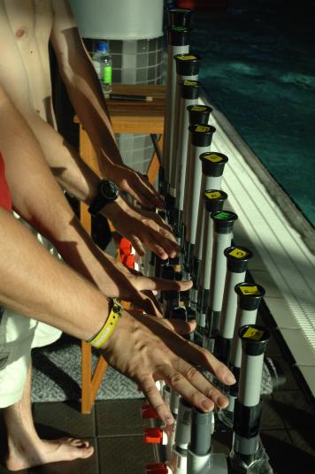 foot (100 metre) pool, but some immersed themselves for the full