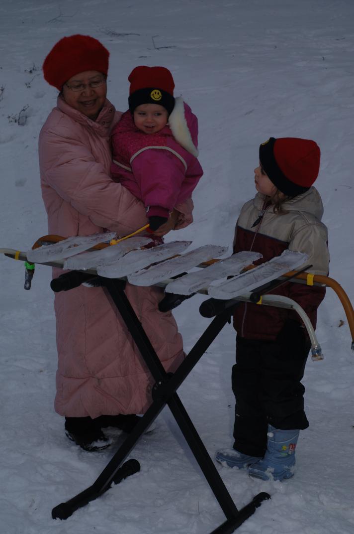 Christina (age 5) builds a pagophone for her skates: