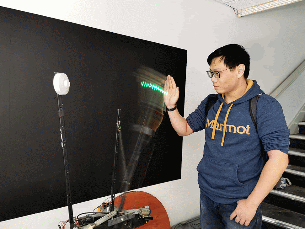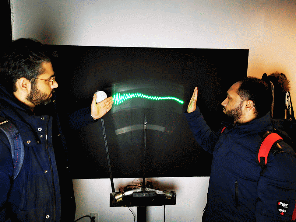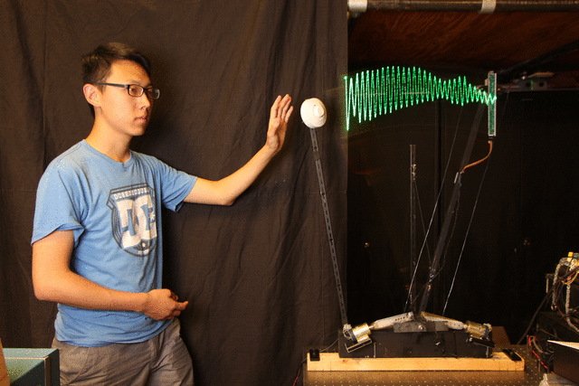 Measuring and seeing the radio waves from a microwave motion sensor, (as a "sitting wave", i.e. in coordinates where the speed of light is zero)