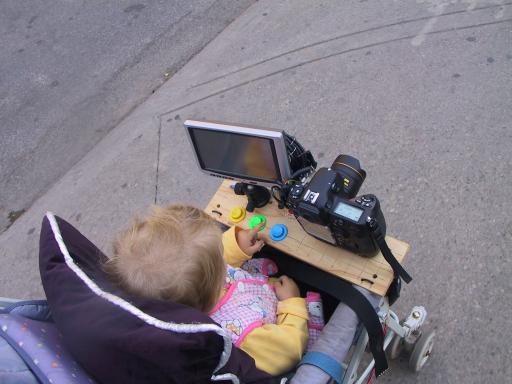 in front of the stroller: