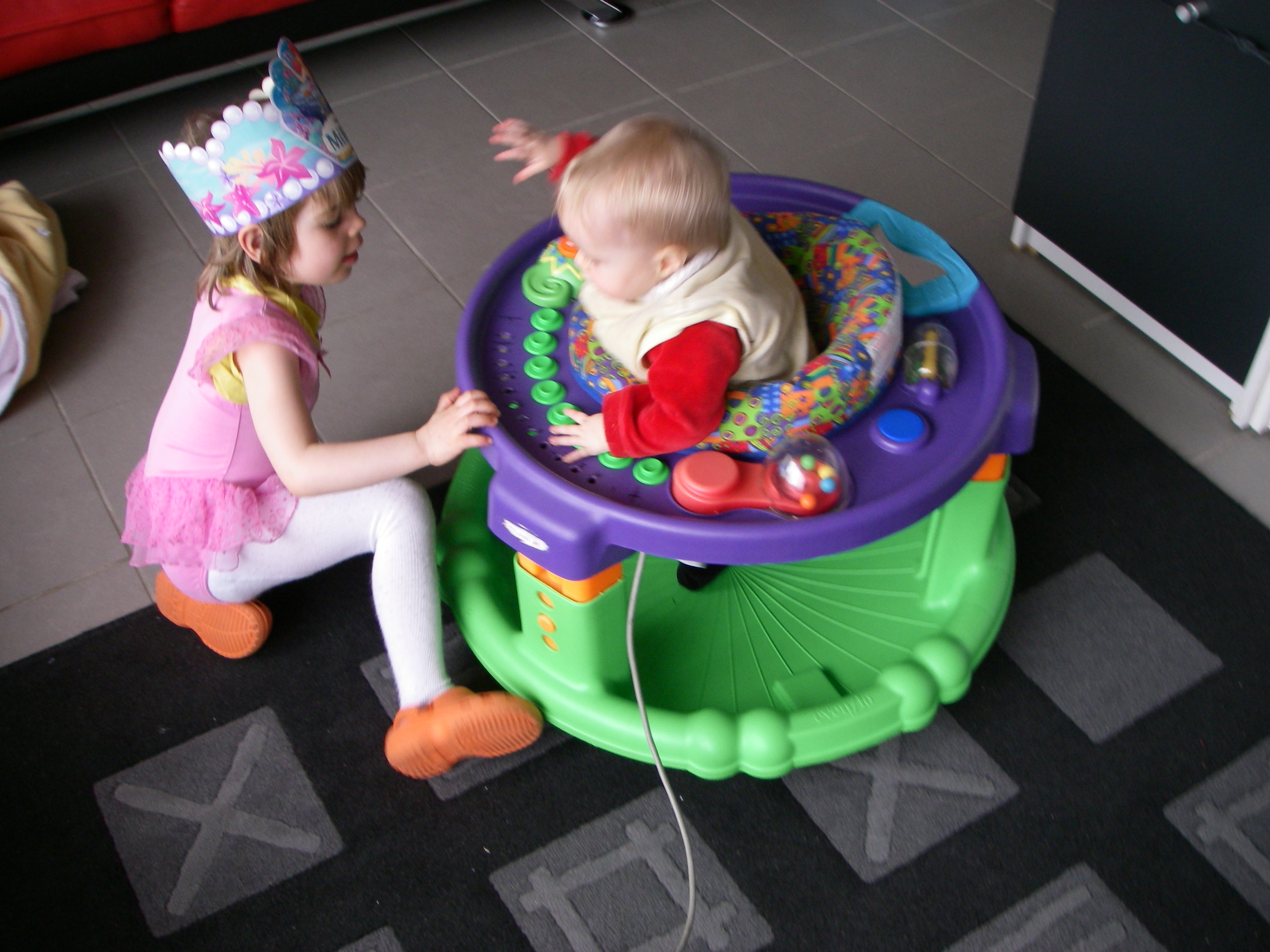 movie of christina playing ascending natural scale with stephanessie in exersaucer
