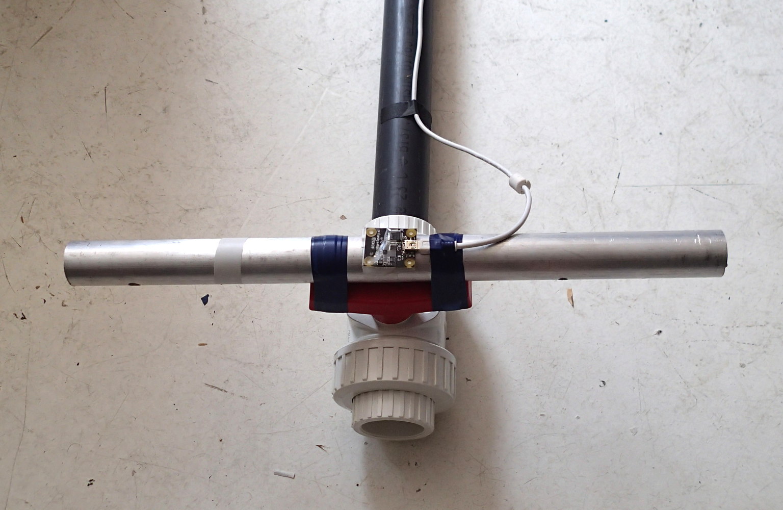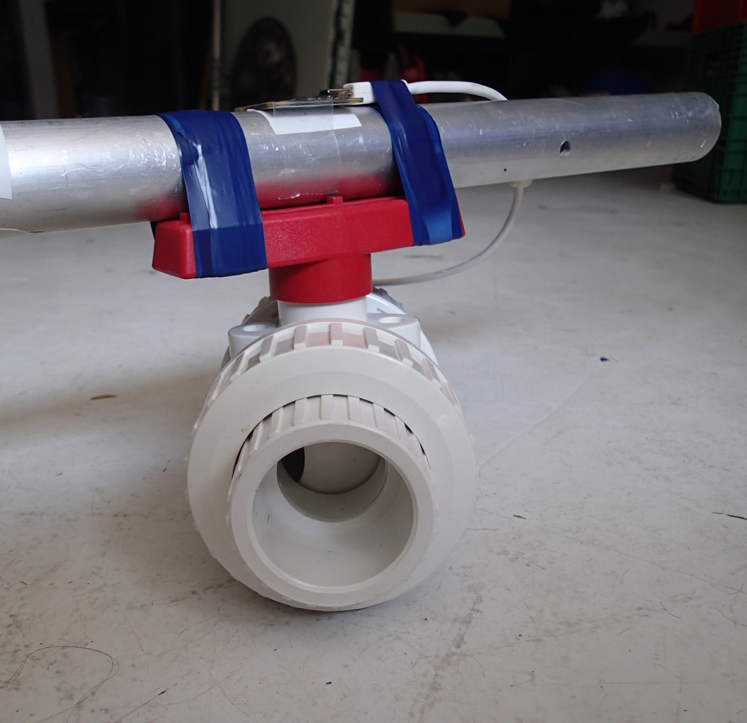 I attached a long metal bar to the ball valve, together with a flow sensor