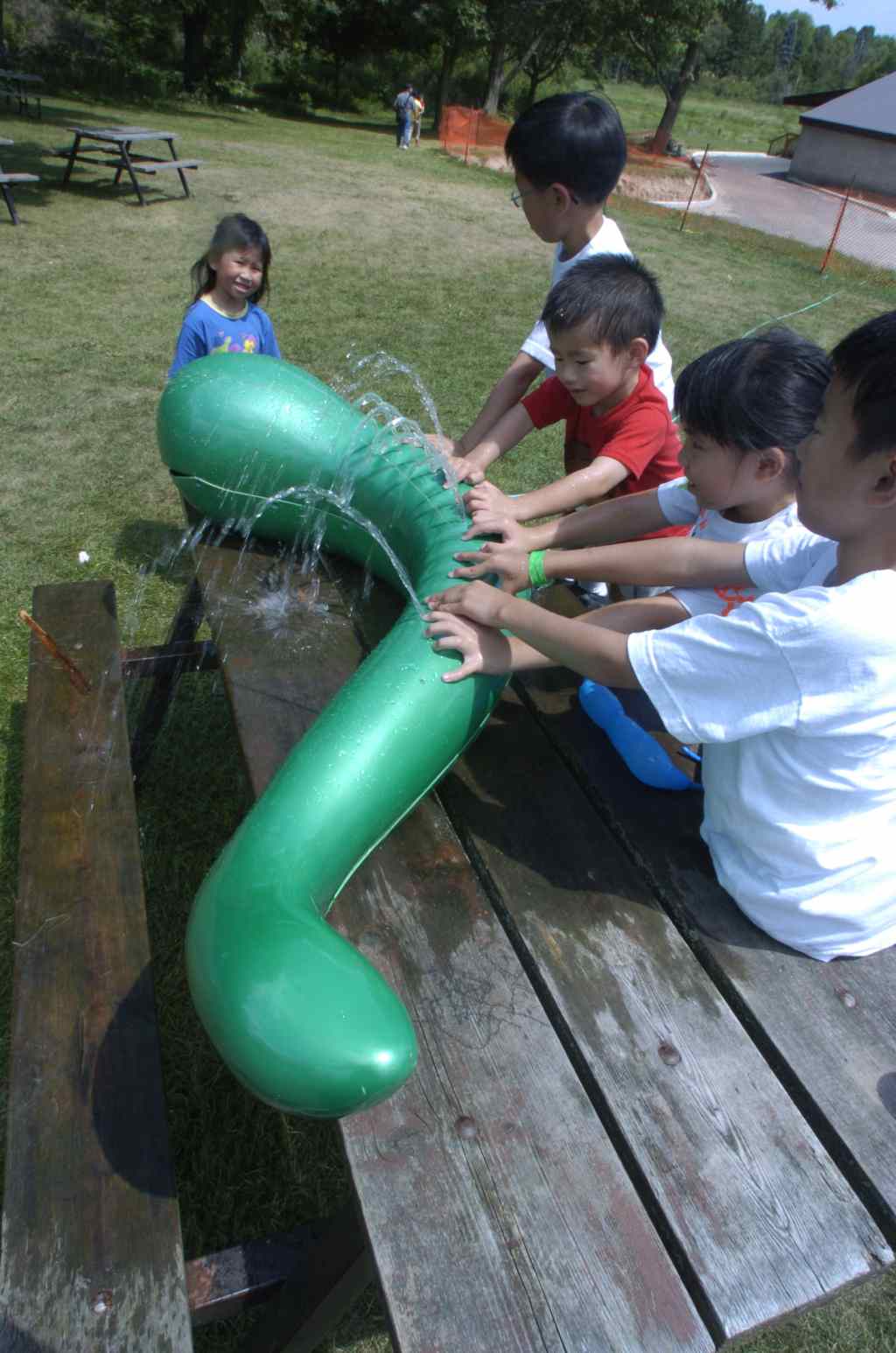 quite happy on a picnic table, hooked up to a garden hose:
