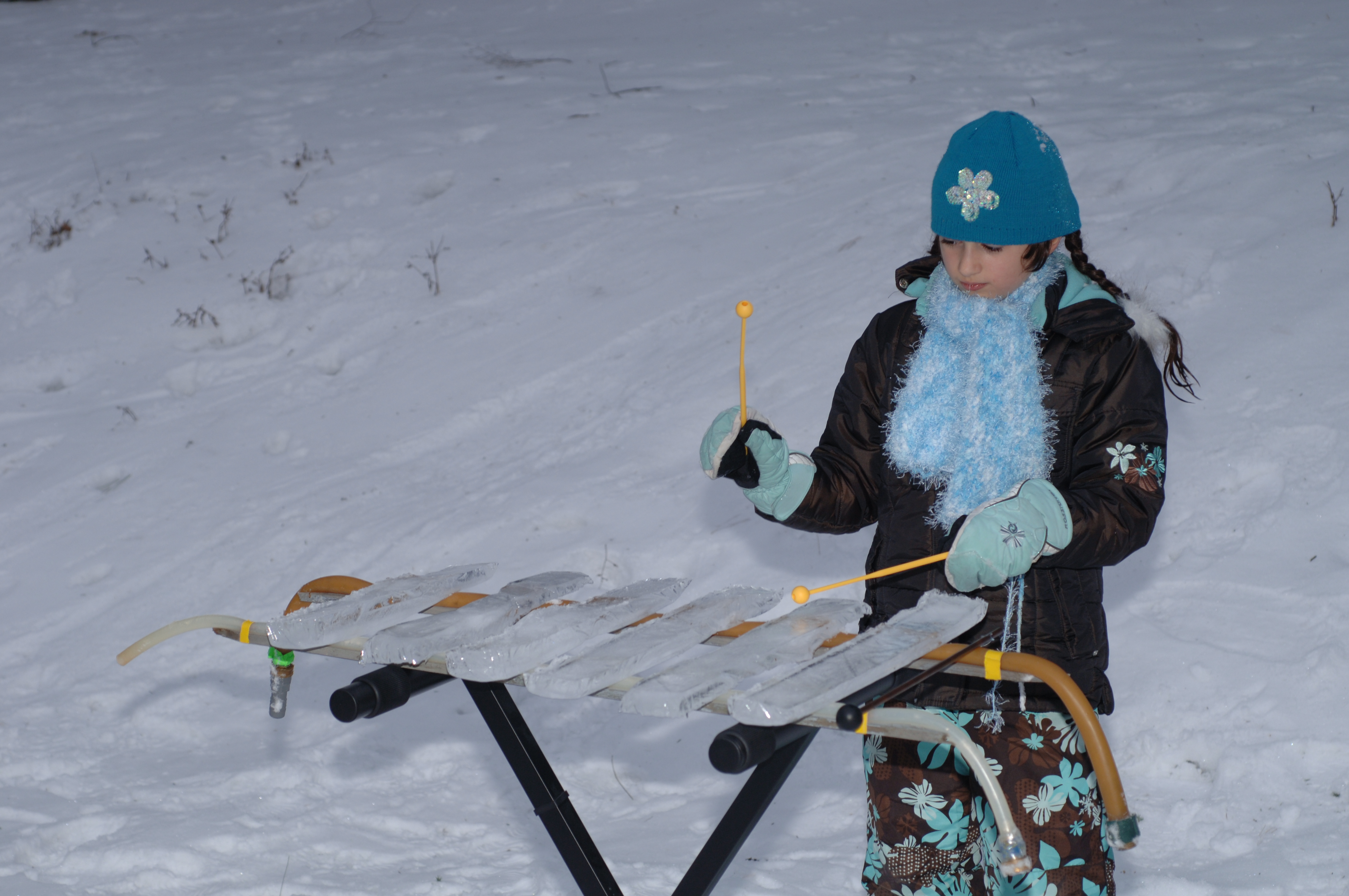 the ice-scrapers are ice skates, and the instrument is played