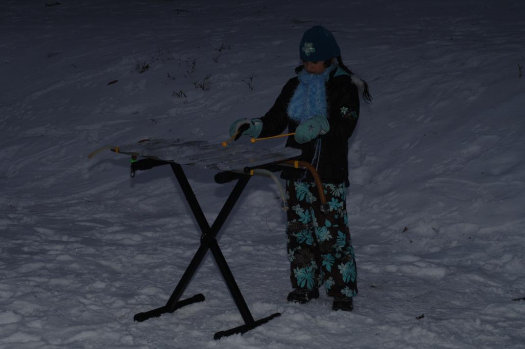 Christina (age 5) builds a pagophone for her skates: